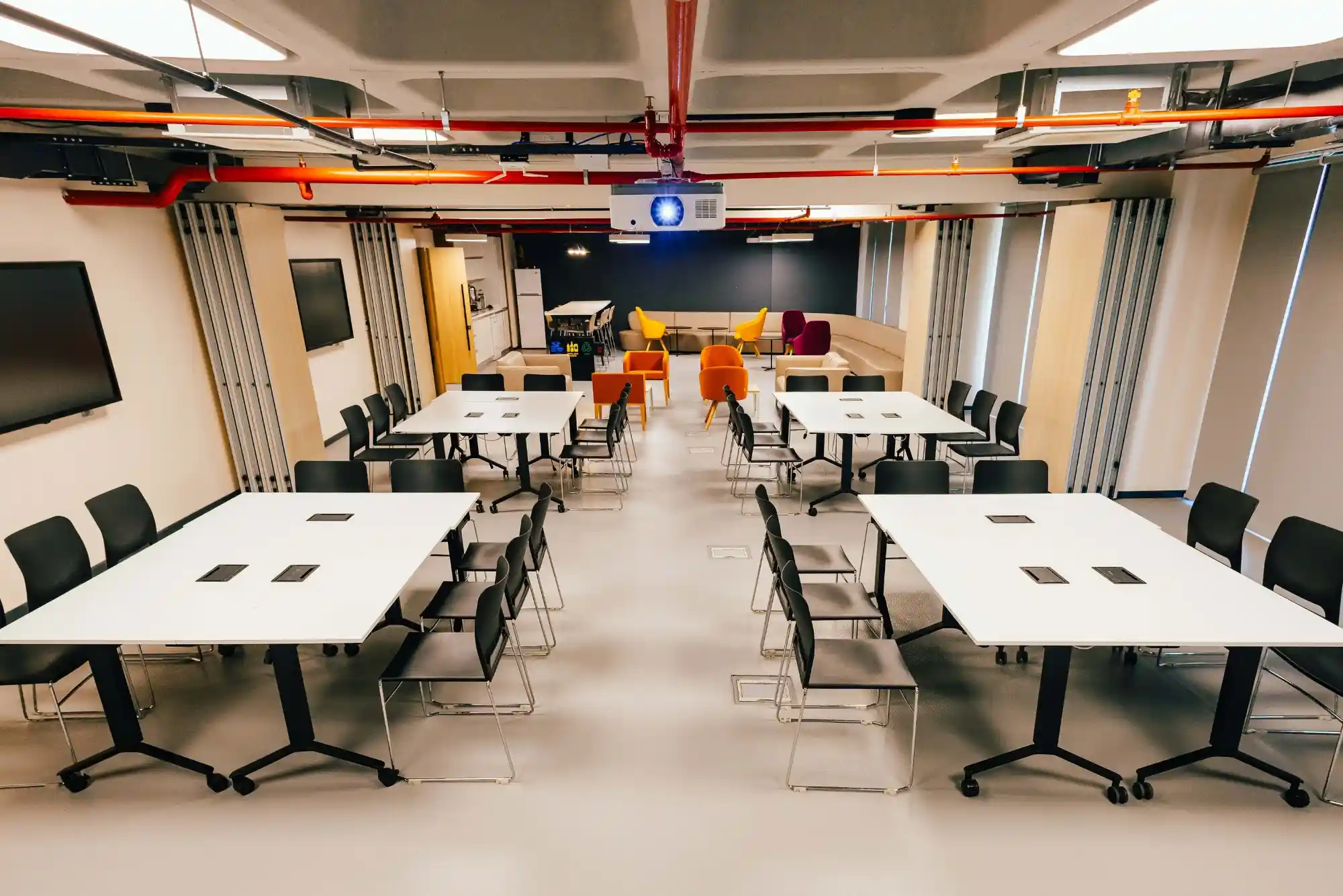 Flex Etkinlik Salonu, etkinliklerinizi sorunsuz şekilde gerçekleştirebilmeniz için yüksek çözünürlüklü projeksiyon veya büyük ekran, HDMI ve kablosuz bağlantı altyapısı, güçlü internet erişimi, ses sistemi ve gerekli temel teknik donanımlar ile donatılmıştır. Sunum, eğitim veya workshop gibi etkinliklerde ihtiyaç duyabileceğiniz tüm ekipmanlar salon içinde hazır bulunur ve teknik destek ekibimiz gerekli durumlarda size yardımcı olur.